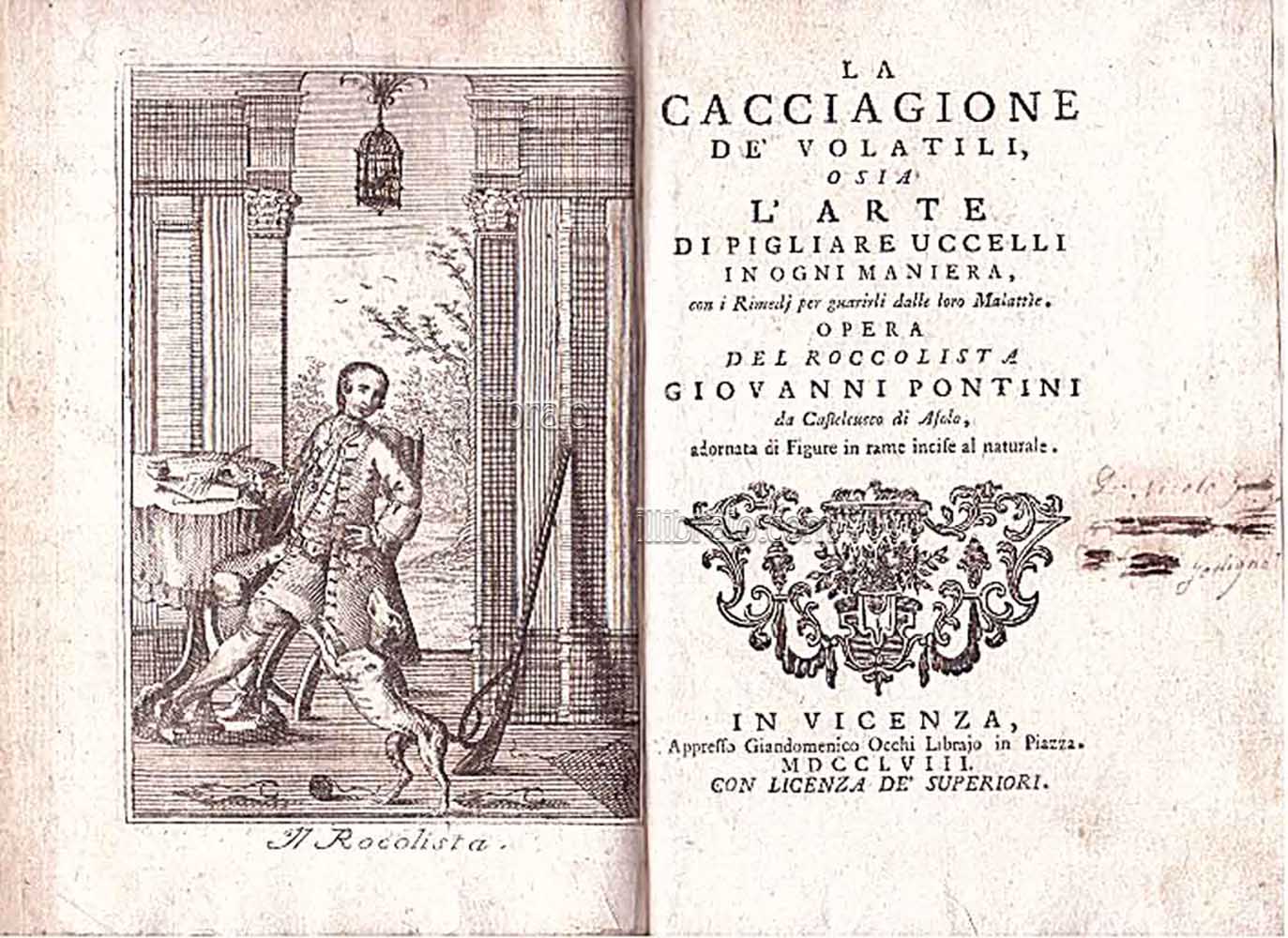 La cacciagione de' volatili, osia l'arte di pigliare uccelli in ogni maniera, con i rimedj per guarirli dalle loro malattie. Opera del roccolista Giovanni Pontini da Castelcucco di Asolo