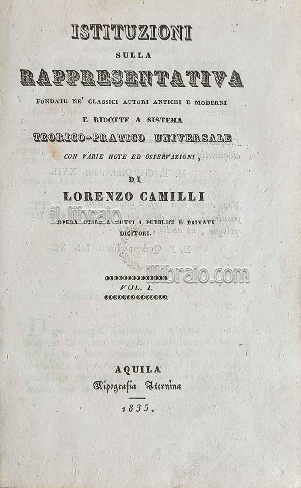 Istituzioni sulla rappresentativa fondate ne' classici autori antichi e moderni e ridotte a sistema teorico-pratico universale con varie note ed osservazioni